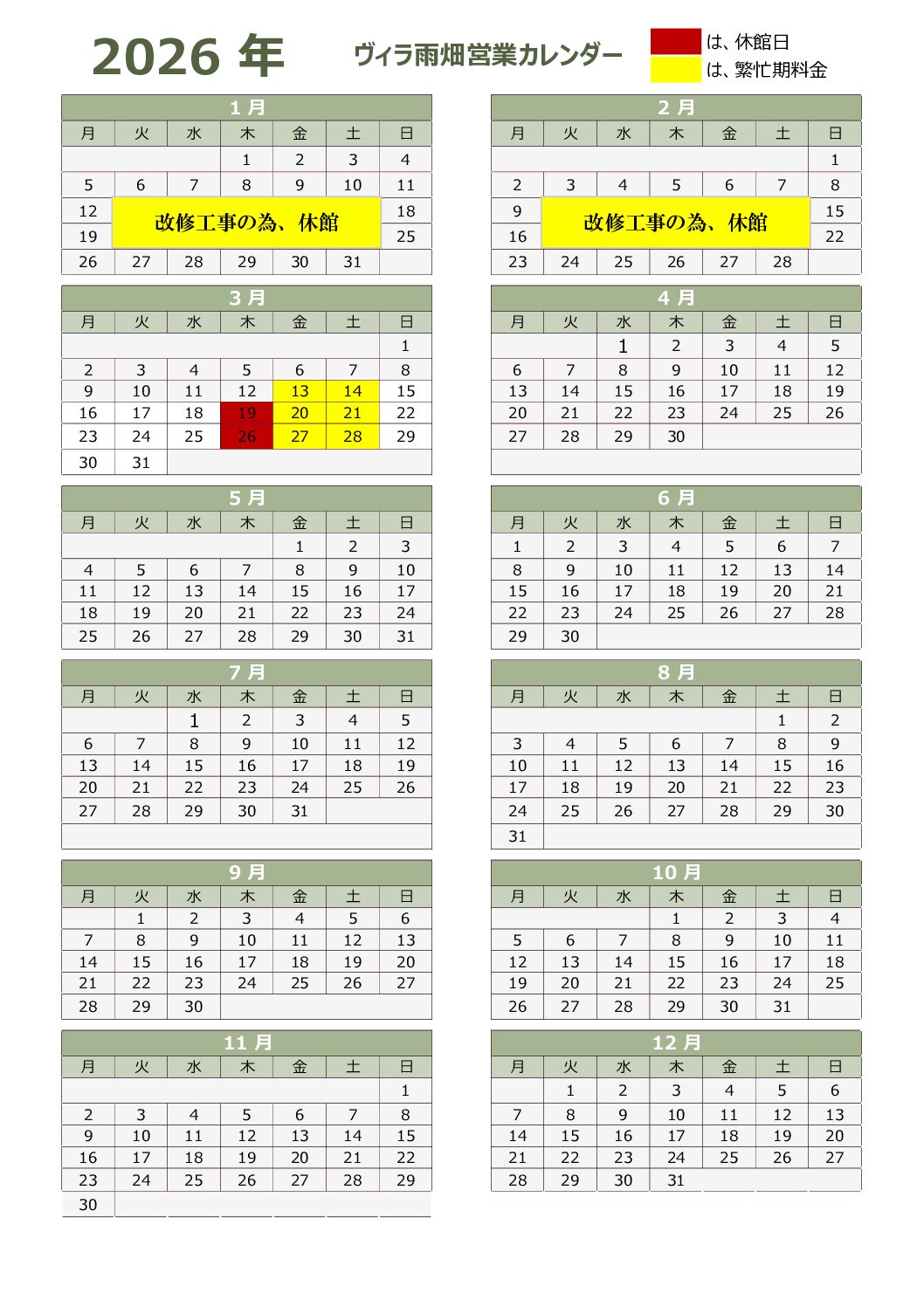 料金表(期限2025年4月1日から2026年3月31日まで)